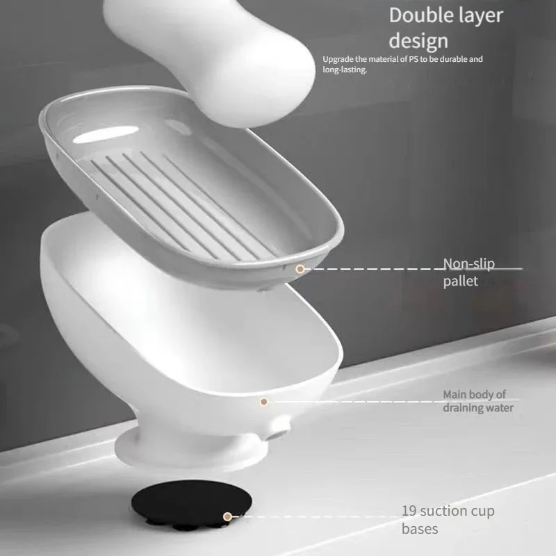 Soap Storage Box – PS Material, Uncovered, Double-Layer with Drainage Plate, Detachable